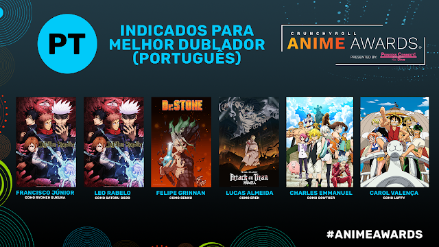 Além da Crunchyroll premiar os animes,terá também uma premiação aos melhores dubladores brasileiros,que foram escolhidos pelo voto do público no site do Anime Awards Dubladores,os finalistas escolhidos foram: